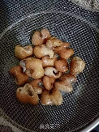 猪大肠炸至金黄捞出沥干油分。