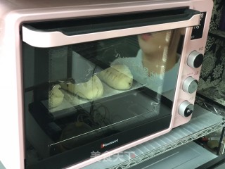 放入烤箱,设置40度下管,进行发酵,倒数第一层放个烤架,烤架上放一盆热水。