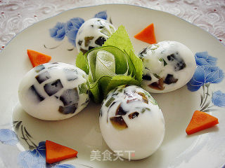 这个鸡蛋制作起来很简单,但是看起来很漂亮很可爱噢。吃着既有皮蛋的鲜香,还有黄瓜的清爽。看着也好可爱呀,呵呵。
