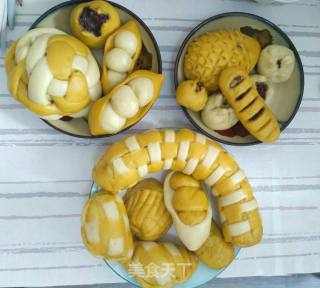 然后整个包住白色红枣面团。这里我没注意,要将白色的收口放在红色收口一起,才更美观。我的镂空处能看到里面的收口了,这是败笔。