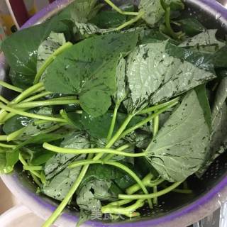 地瓜叶 择去老茎,取嫩叶,洗净备用。