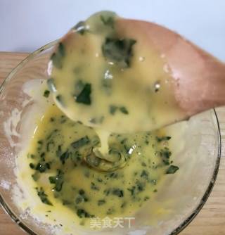 芹菜叶焯水切碎放入面糊中。