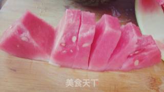 左右推一下切好的西瓜块,吃起来方便又好看。