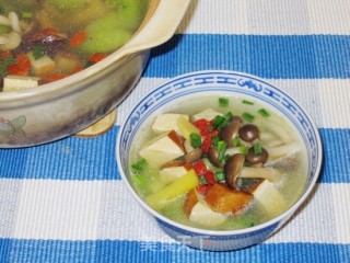 攸县香干切丁,丝瓜和生姜切块,姬菇去根,枸杞子泡发,香葱切末。