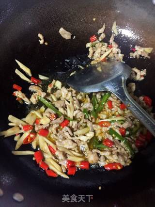 炒锅中放油,等油烧热后,放入瘦肉翻炒,再放入泡椒泡姜翻炒。