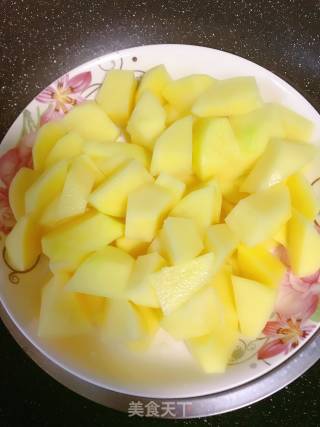 土豆切滚刀块上锅蒸15-20分钟。根据自己土豆的量增减。我三个土豆蒸了20分。