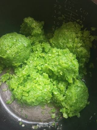 南瓜藤加盐剁碎,挤出多余的水份。