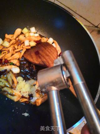 放入炒过的花生米,滴点点酱油,点点盐巴,点点鸡精后翻炒片刻即可出锅。