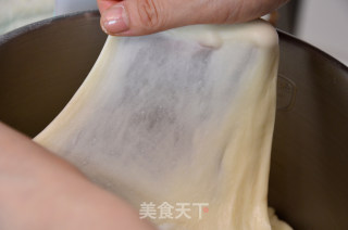 5、油皮面团中因为有猪油,很容易揉出膜,揉到拉伸性很好的状态,后面的擀卷会更好操作,皮不容易破。