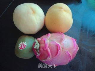 准备水果:黄桃,水蜜桃,火龙果,红心弥猴桃。
