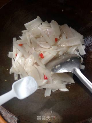 放入切好的酸萝卜片,翻炒一俩分钟。