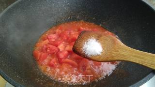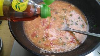蛋液成碎碎的雪花片关火撒点葱花,淋上香油美味的番茄鸡蛋汤就好了。