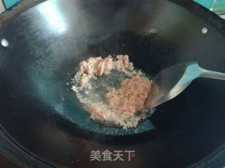 准备馅:揉匀的肉泥,榨菜切丁,胡萝卜切丁,蒜蓉适量。