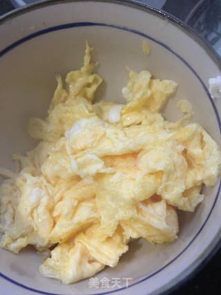 炒好的鸡蛋,放称鸡蛋液的碗里。