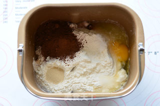 除黄油外,按照先液体后粉类最后酵母和盐的顺序把可可面团的材料放进面包桶,启动imix程序揉面。