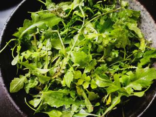 小米椒,蒜末放荠菜上,适量盐,陈醋,生抽,香油。