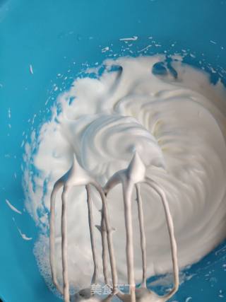 分3次加入20g糖粉,打到干性发泡,直立的蛋白尖。