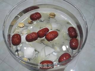 银耳泡发,洗净,撕成小朵,红枣洗净,雪梨去皮洗净,切成小块儿,黄芪洗净,一起放入养生壶里。