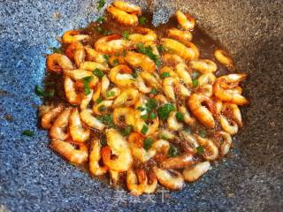 油温烧至七成热,放入河虾,翻炒几下就准备出锅。