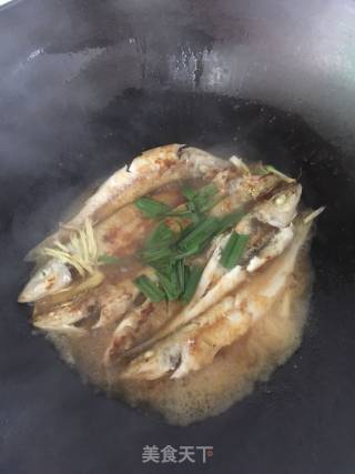 煎好后加水,加蒜苗,加盐,酱油去焖五分钟。
