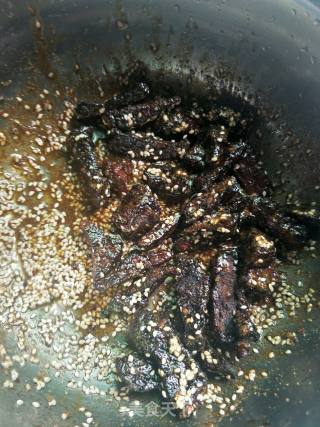 这是用微波炉的通过的牛肉特别的干当然不喜欢吃太干的话大家可以用小火继续煸炒。