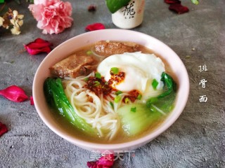 人日子吃面条,有熟排骨下入面中更香了。 ”