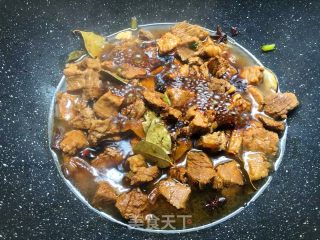 2、牛腩煮的时间比较长,炒好以后可以用高压锅煮,这样煮的比较快一些。