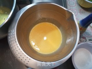 用蛋抽画一字拌匀或者用刮刀翻拌均匀,使粉类和蛋黄充分混合均匀,成为细腻的蛋黄面糊。