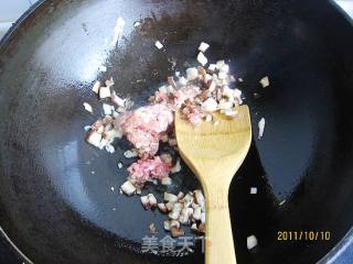 开锅看看,当蛋液只剩表层末凝固时,放入炒好的肉馅,再蒸三到五分钟即可。