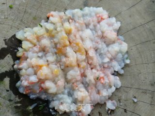 虾仁末放入韭菜中