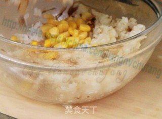 将日本寿司醋和煮好的白米饭以饭7:醋1的比例拌匀制醋饭(醋饭方法参考金沙甜粟米反卷,如要自制寿司醋,参考鲭鱼寿司)