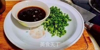 小葱切颗,用淀粉、白糖、鸡精、生抽、老抽、醋、料酒加水调成汁。
