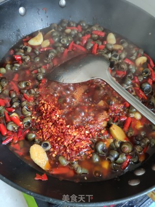放四五片姜,三勺料酒,一锅水煮开倒入洗净去尾的螺丝焯水,30秒捞出。
