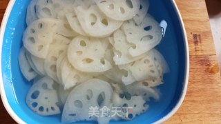 脆藕290g切薄片,用水淘洗两遍,去掉表面的。