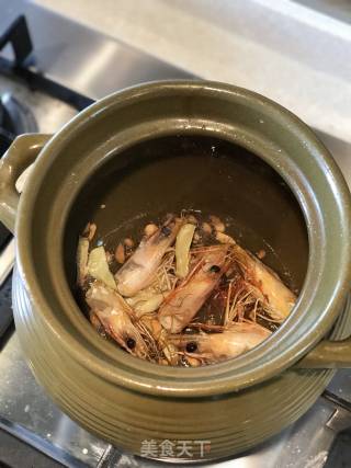 新鲜大虾去壳 去虾头 开背去虾线后将虾头和虾身冲洗干净备用。