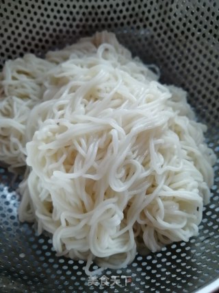 面条捞出来,冷水冲洗。这一步很重要,不冲洗的面条会坨在一起。