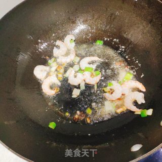 放入虾仁,炒红,炒香。