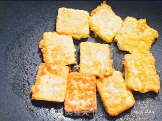 调好的糊到在豆腐片上,让每一片豆腐都裹上一层糊