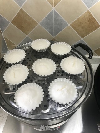 买一包米糕干预粉、里面配有发粉包、准备清水、白糖即可。