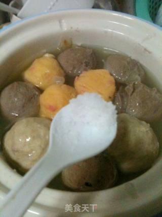 “ 我对着这款汤,细想了很久,就是没有想到好名字来。于是爱想的因子就狂跟自己过不去。一下子灵感来了。。。取名豆你丸。呵呵好听好玩的名让,让我的仔仔对这款汤也是十足的喜爱。孩子就是爱新鲜,爱好玩。有时候为了让仔仔多看上一点菜菜,我也花了不少心思滴,当然这也不是一味的宠爱。这其实也是自己有爱好所致。送上今天的这款豆你丸先。希望你们喜欢啦。 ”