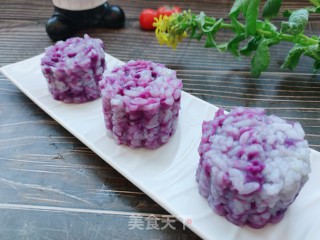 牛奶倒入紫薯里面,捯成紫薯泥,不要太软。