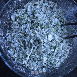 搅拌均匀,使苜蓿均匀裹满面粉。