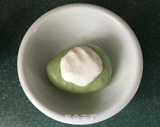 大致揉成团加入猪油,再揉成光滑;猪油和白糖量都放得是最少了,也可改放10克植物油。