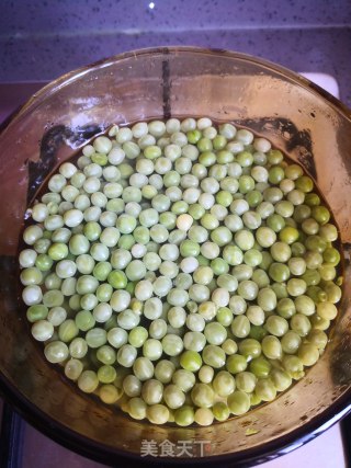 将豌豆捞出,放入凉水过一下,然后把水控干。