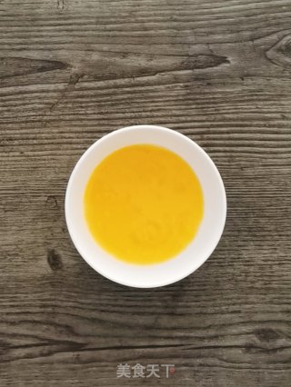 不粘锅加入0.5勺植物油,倒入蛋液煎至底部凝固。