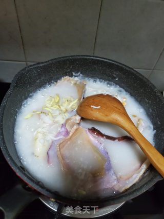 这是煮了5分鐘的粥,已软烂了,煮粥时因为大火需用勺子不停搅,免煮粥或溢出。