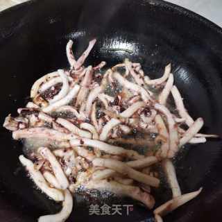 加入适量老抽,蚝油盐和五香粉糖调味然后加入韭苔。