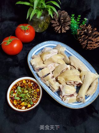 成品图。蘸料:香菜,蒜末,小米辣,酱油(其实鸡肉已够味了,蘸料随各人喜爱)。
