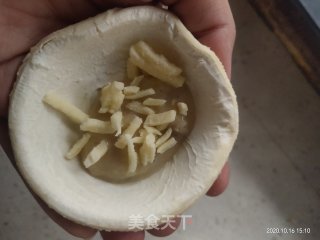 蛋挞皮解冻软化去掉壳,放入香蕉泥。