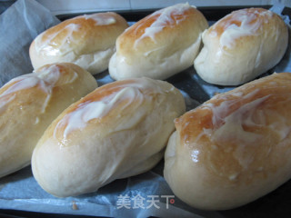 第二次发酵至两倍大,现在我们这里室温大概18-20度,约用了1个小时。面团发好了,烤箱180度预热10分钟,在面团表面刷蛋液,放入预热好的烤箱烘烤20分钟左右。